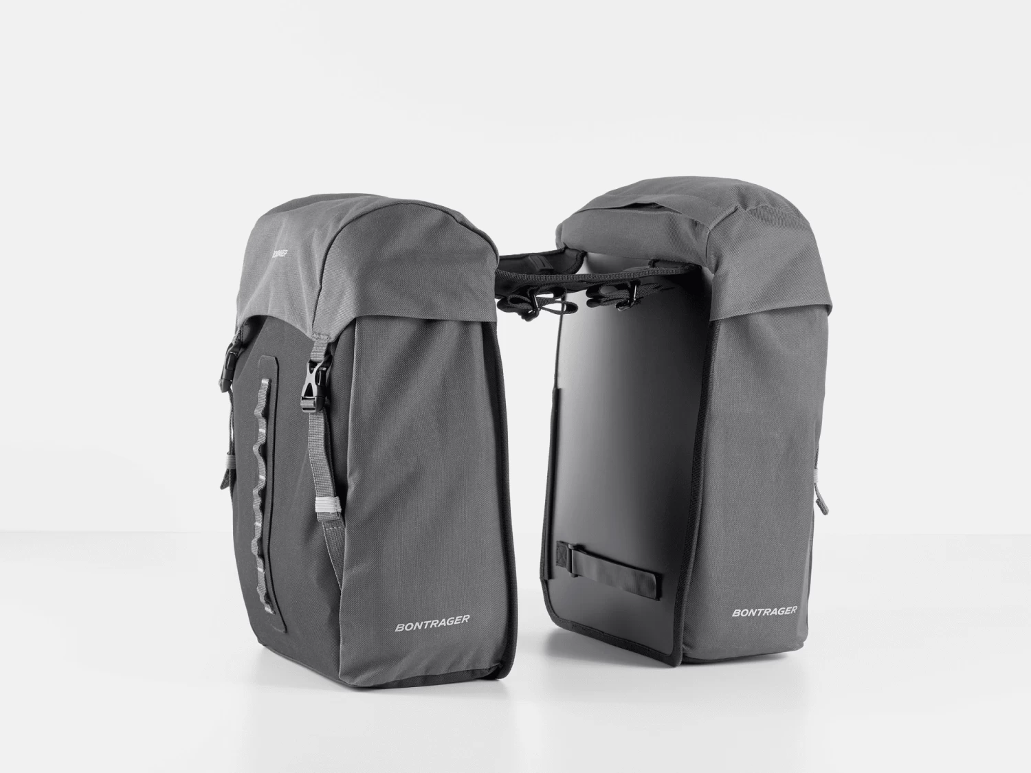 The Bontrager Town Double Pannier is a simple, compact carrier that lets you do more and carry more by bike. Mounting is easy and secure via the unique universal bridge design. External pockets and compartments help secure and organise your cargo.