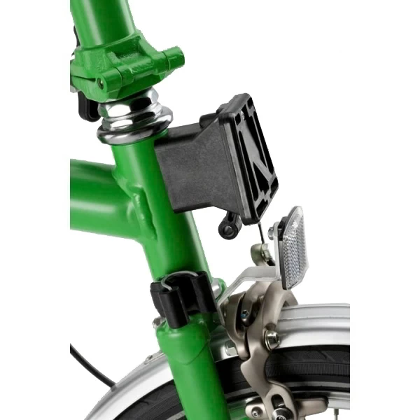 The front carrier block comes as a kit ant it's easy to install. It attaches to the pre-made fittings on the head tube at the front of your Brompton bike, which allows you to quickly and easily add and remove a Brompton bag.
