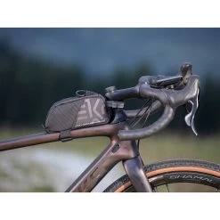 The Ekar Node R is an ultra-light top tube bag designed for gravel, racing and road bikes. At just 4.8 cm wide it is the narrowest in its category, minimizing possible contact with the legs when pedalling. EKAR Node R is the bag designed to hold all those things we want within easy reach, without having to slow down, such as energy bars, smartphones, power banks, cameras and so on.