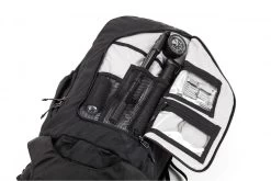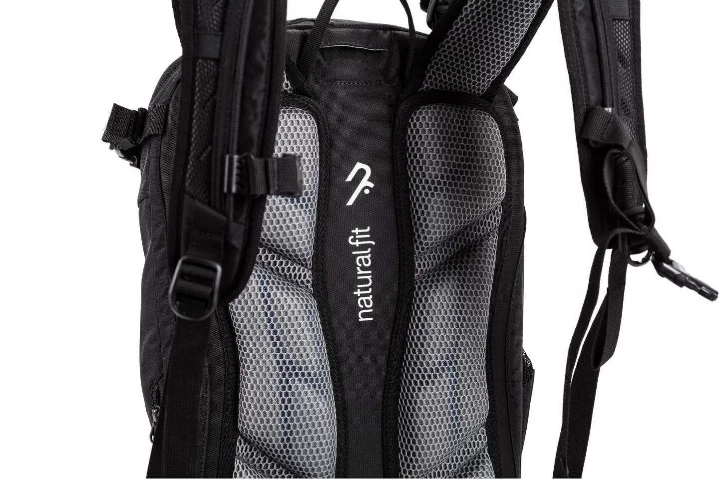 Perfect timing, the cloud cover tears up and the sun shines through the treetops at the start of my favorite trail. At the beginning it still flows through the spruce forest but further down it becomes technical and steep. If the worst comes to the worst, the replacement hose and pump are easily accessible in the perfectly organized tool compartment. And then the nasty drop at the key point. It’s good to know that my back is optimally protected by the integrated SAS-Tec protector.