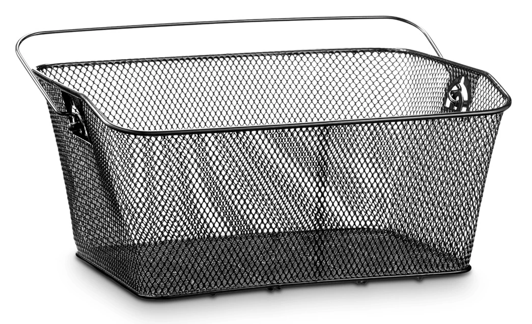 Simple basket for luggage carrier with saddle clamp, perfect for school bags, tool-free mountable on luggage carriers with spring flap.