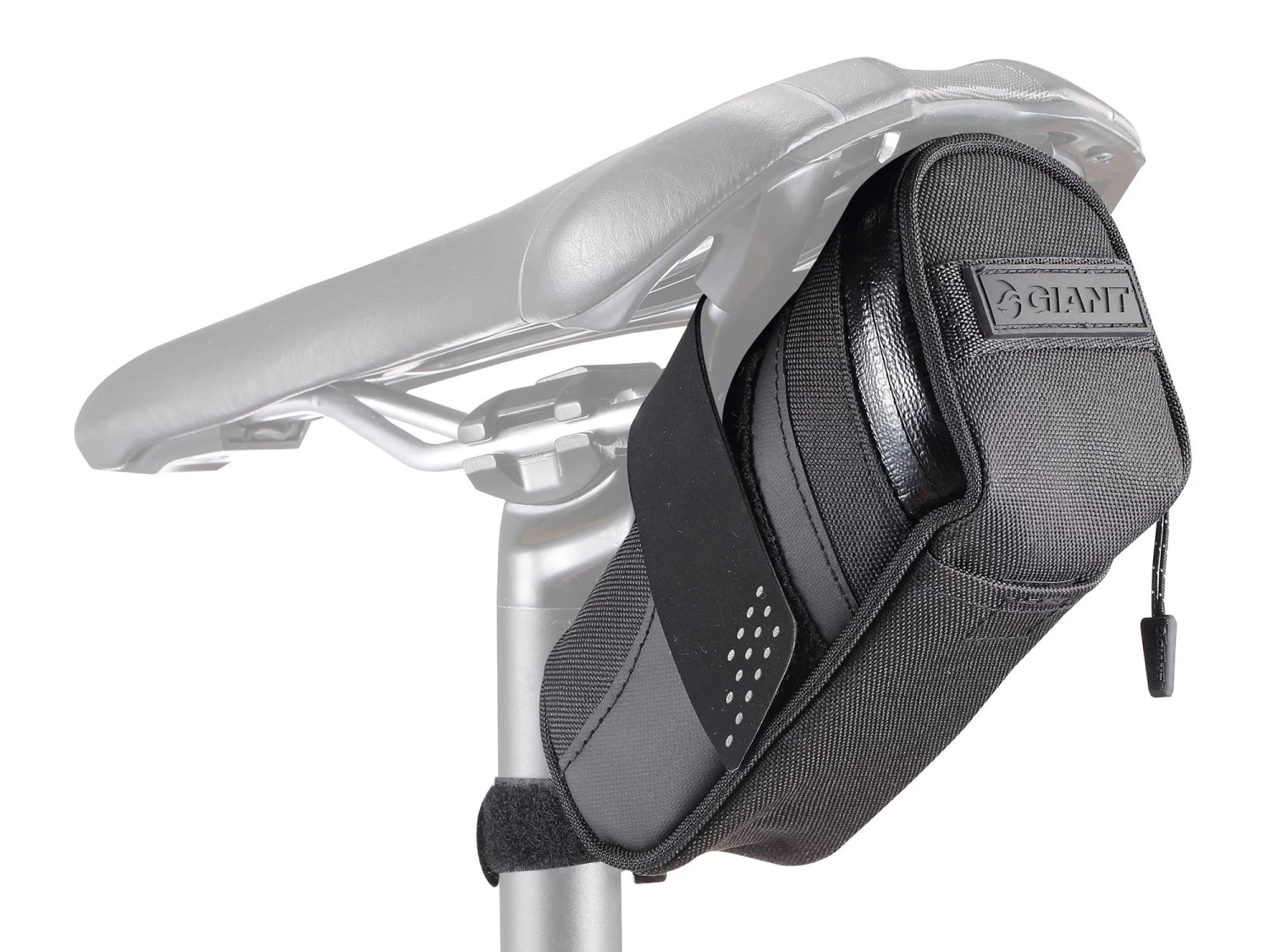 Giant Shadow DX Seat Bags feature water resistant ProTextura fabric construction with a water-proof zip, in a slimmer design that fits neatly under performance road bike saddles. A simple anti-slip hook and loop Velcro strap fitting allows easy removal and fitting and the reflective strip offers improved low light visibility with a tail light hanger for adding your own light.