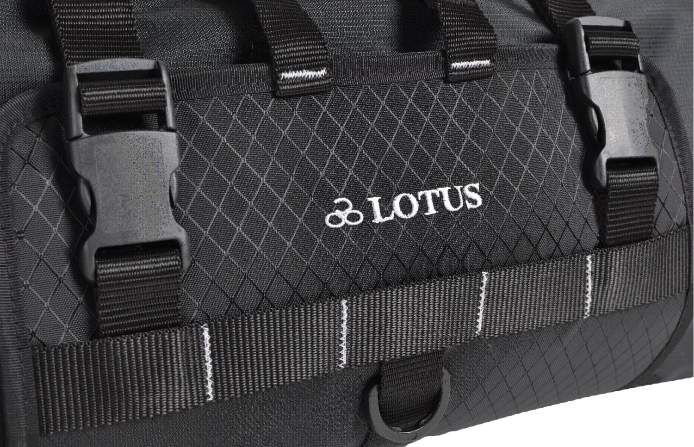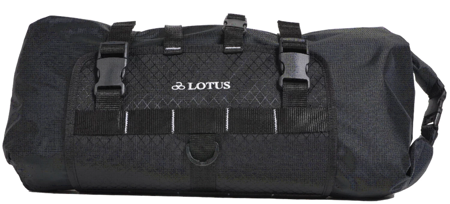 Waterproof construction with roll down closure at one side. 600D polyester fabric and adjustable height crown strap.