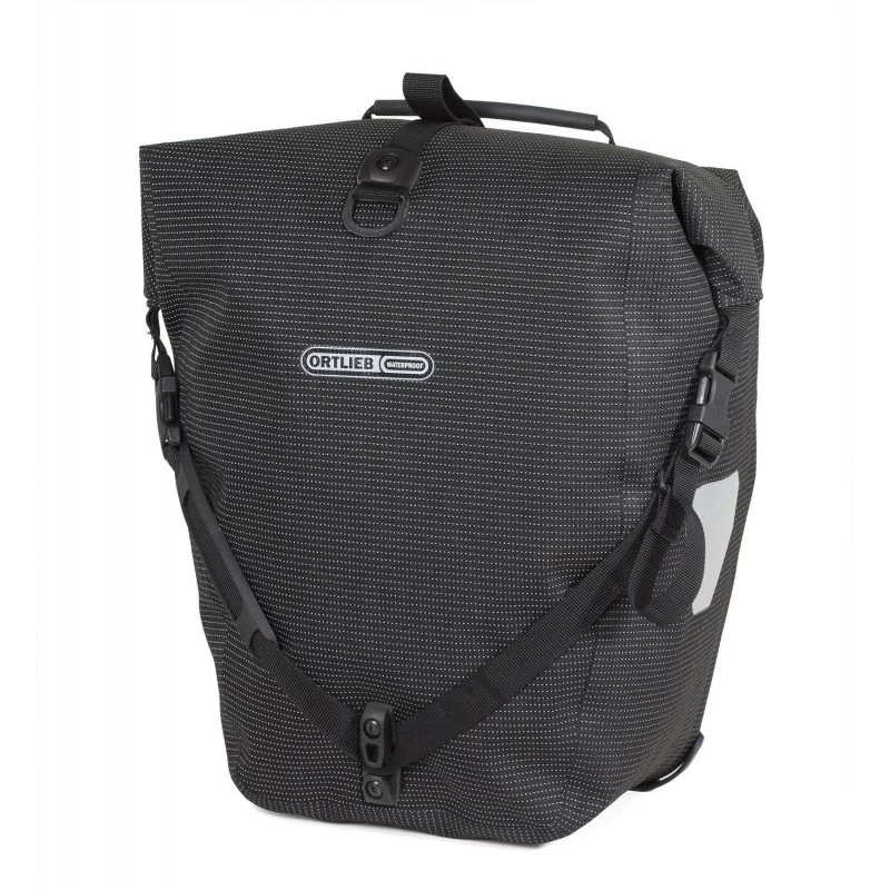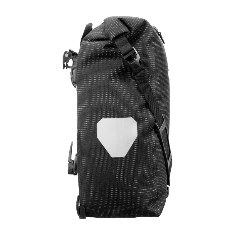- Classical rear pannier (single bag) with roll closure in bright reflective colour