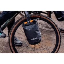 Fast, faster, Fork-Pack with Quick-Lock S adapter system. The all-new and innovative adapter system is ideal for attaching bags like the waterproof Fork-Pack to the fork of your bike. Weighing just 290 grams (including adapter), the fork pack offers approximately 4.1 litres of additional storage space for bike packing. With the help of the QLS adapter, this ultra-light bag with roll closure can be mounted on forks with eyelets or cage mounts intended for this purpose, as well as on forks without cage mounts, as long as the fork blades sport a constant diameter of 30 mm to 42 mm. QLS bags are primarily designed for attachment to the fork, but can be attached to all vertical tubes using the accessories supplied.