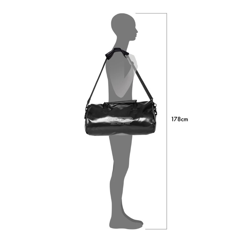 This 100% waterproof PVC Free travel bag has all the advantages of an easy to use dry bag: its flexible and variable packing volume adjusts to any situation and takes all the gear for travelling and sports. The roll closure with stiffener bar has its roots in stuff sack technology. It fits perfectly into bike trailers and this size can be combined with Ortlieb Back/Sport-Rollers on the rack for bike touring. This robust bag is also good for motorcycles. Comfortably carried with an adjustable padded shoulder strap and carrying handles.