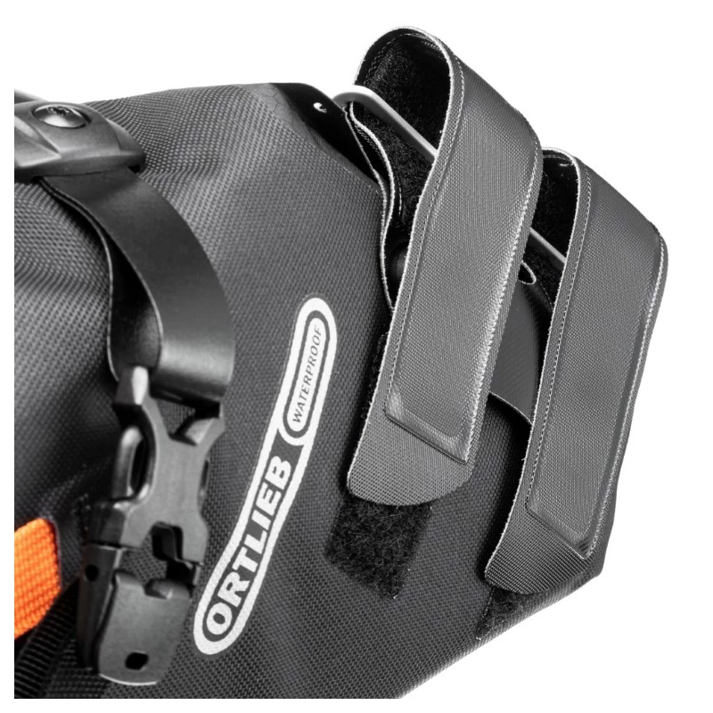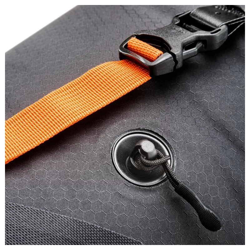 Get ready for your next bikepacking adventure! As a key item in your bikepacking setup, the ORTLIEB Seat-Pack comes with Velcro straps to enable convenient and secure mounting to your seat stem. Projecting backwards from the seat stem, your Seat-Pack also serves as a rear mudguard. The spacious, waterproof Seat-Pack keeps its contents (e.g. an extra set of clothes) safe and dry. Depending on how long you plan to be away, you can conveniently adjust the volume of your pack from 8 to 16.5 litres by adjusting the roll closures on the sides. An additional valve allows you to quickly and easily compress your soft gear for a more compact fit. Your Seat-Pack also serves as a replacement backpack when you’re out on a day trip, no matter whether you ride a hybrid bike, a mountain bike, a road bike or an electric mountain bike.