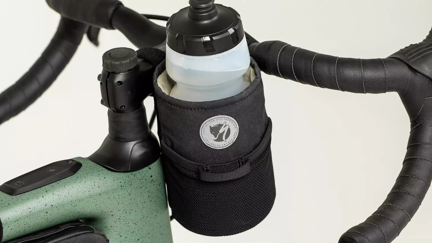 Easy-access handlebar holder for a bottle, snacks, or other small items. Helps keep hydration and spirits up on warm, high-intensity days in the saddle. A cinch-and-release snowlock closure makes for easy handling and keeps contents in place on bumpy rides. Made from durable Vinylon with an all-around foam padding for structure and ease of use. Attaches to the handlebar post with up to three Velcro straps. Can also be attached to the webbing on the front of the Specialized/Fjällräven Handlebar Bag. Part of the Specialized/Fjällräven series for urban rides and bikepacking adventures.