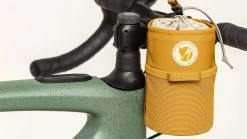 Easy-access handlebar holder for a bottle, snacks, or other small items. Helps keep hydration and spirits up on warm, high-intensity days in the saddle. A cinch-and-release snowlock closure makes for easy handling and keeps contents in place on bumpy rides. Made from durable Vinylon with an all-around foam padding for structure and ease of use. Attaches to the handlebar post with up to three Velcro straps. Can also be attached to the webbing on the front of the Specialized/Fjällräven Handlebar Bag. Part of the Specialized/Fjällräven series for urban rides and bikepacking adventures.