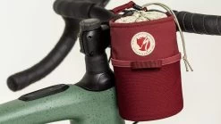 Easy-access handlebar holder for a bottle, snacks, or other small items. Helps keep hydration and spirits up on warm, high-intensity days in the saddle. A cinch-and-release snowlock closure makes for easy handling and keeps contents in place on bumpy rides. Made from durable Vinylon with an all-around foam padding for structure and ease of use. Attaches to the handlebar post with up to three Velcro straps. Can also be attached to the webbing on the front of the Specialized/Fjällräven Handlebar Bag. Part of the Specialized/Fjällräven series for urban rides and bikepacking adventures.