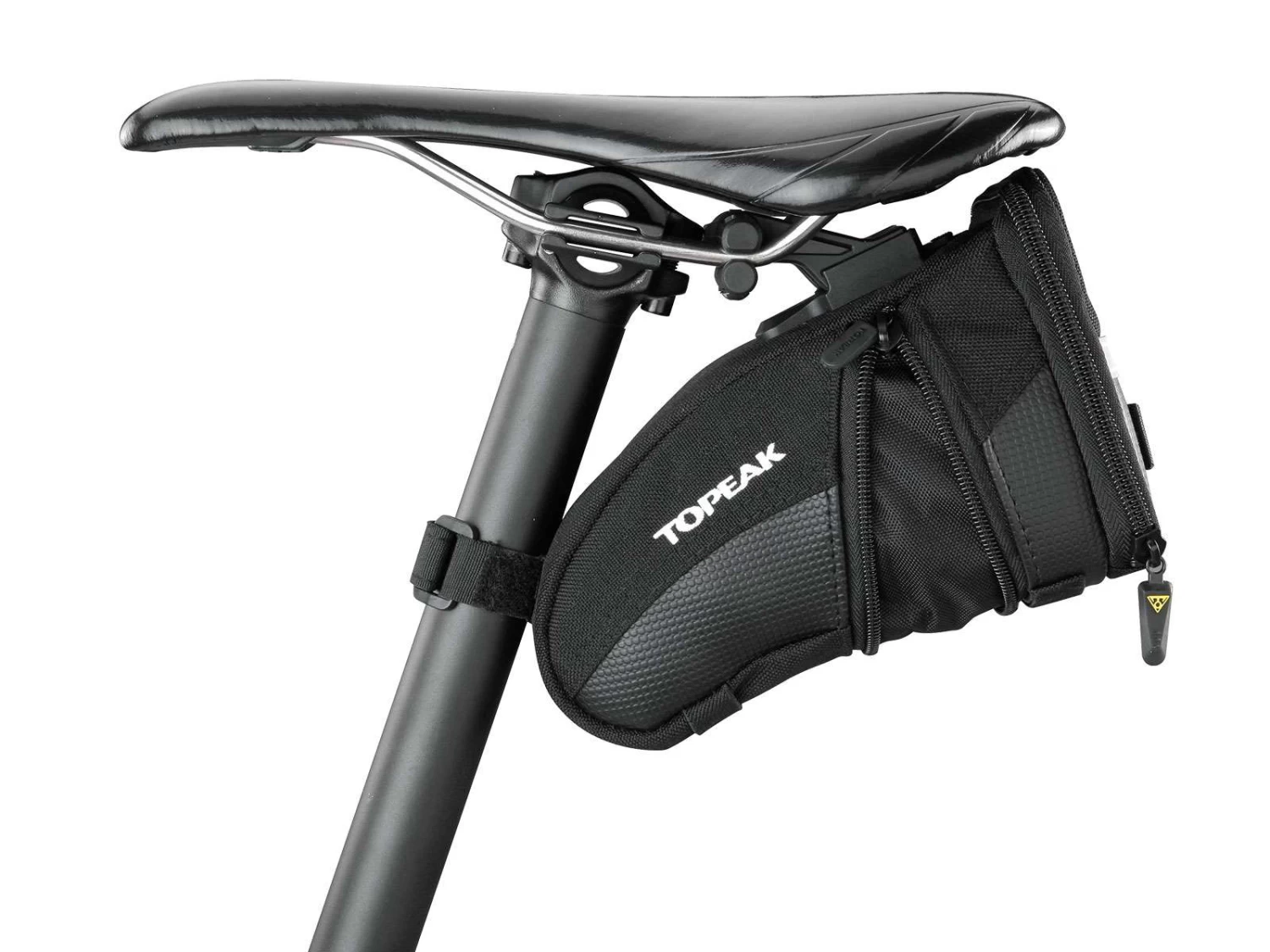 Aerodynamic seat bag holds tubes, tools and other repair items. Mounts and removes quickly with our innovative QuickClick™ system. Four sizes offered to exactly fit rider’s needs.