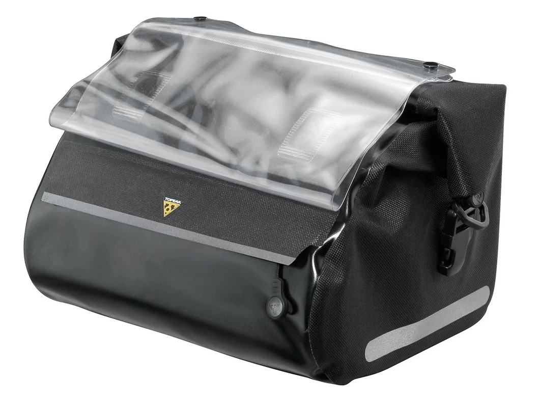 Waterproof 420 denier and 840 denier nylon with sonic welded seams, a drybag roll top closure and weather-tight zippers offer complete protection from the elements. Plus there’s a convenient QuickClick™ clamp, shoulder strap for off-bike use. Reflective printing provides extra visibility.