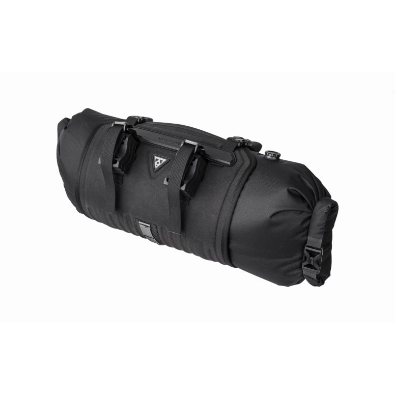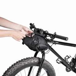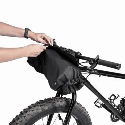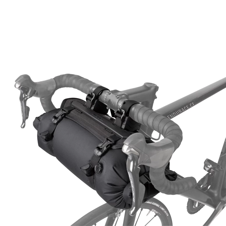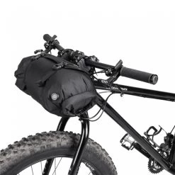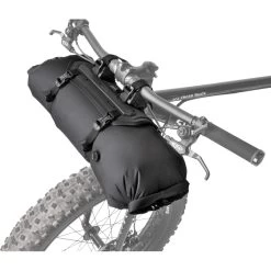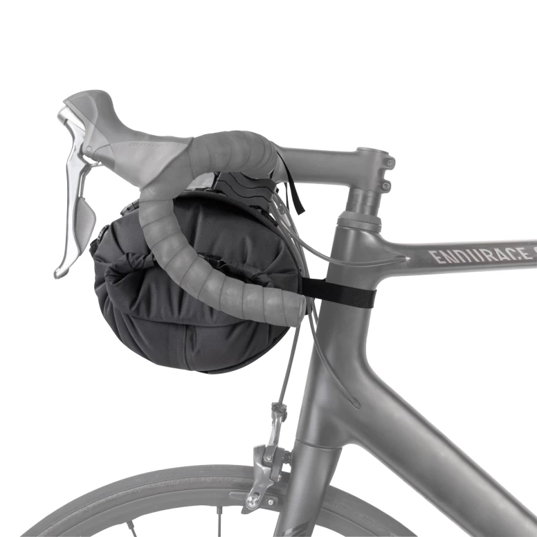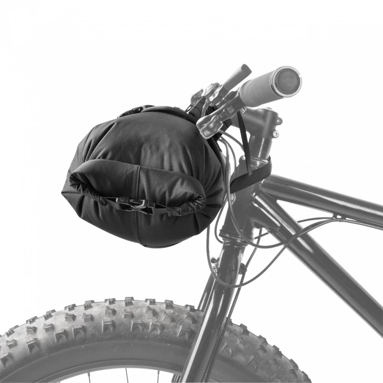 Pack all the gear you need and enjoy the freedom of bikepacking. FrontLoader is perfect for carrying light yet bulky items like sleeping bags, camping gear and spare clothing. Featuring a tough outer support harness and constructed of durable abrasion and water-resistant materials, it’s easily installed or removed with two straps, special spacer mounts and quick-release buckles. A backside head tube strap attachment increases load stability. An 8-litre removable waterproof drybag keeps contents completely protected from wet weather and splashes while a built-in air release button purges unwanted air from the bag to effectively compress its contents.
