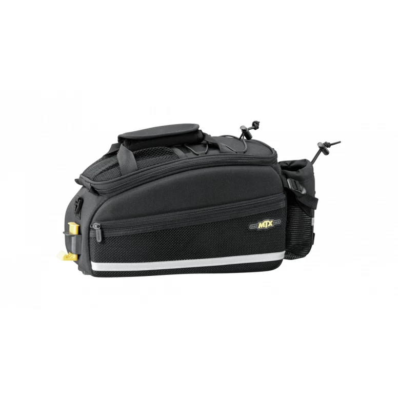 Medium-sized premium trunk bag with large side pockets, or roll-out panniers.