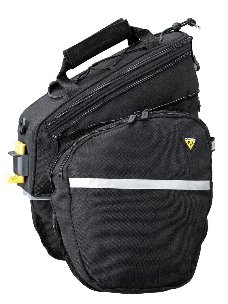 Featuring a large main compartment plus two zippered side compartments that zip open into full panniers and expandable multi-top. Aerodynamic shape is ideal for road and fitness bikes. Compatible with RX QuickTrack™ system with side frames.