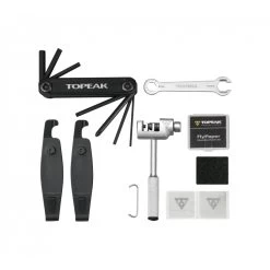 Large dual-side opening moulded panels provide easy access to a complete 17-piece tool kit and all of your under saddle gear. 14-piece tool kit Includes 2, 3, 4, 5 & 6mm Allen wrenches, T25 Torx, Phillips screwdriver, 8 & 10 mm open wrenches, universal chain tool with chain hook, 2 tire levers & a glueless patch kit. *The chain tool is compatible with single and multi-speed chains up to 12-speed, NOT including Campagnolo® 11-speed hollow pin chains.