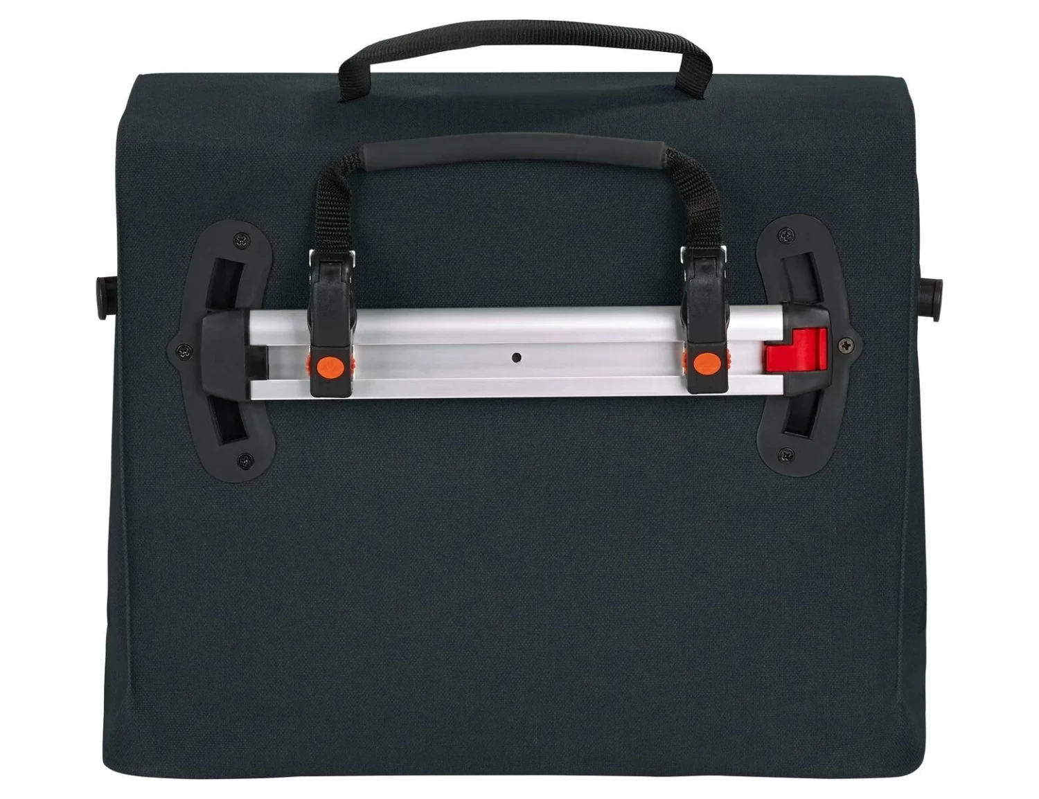 Bike briefcase. You’ll get off to a great start with our mid-sized Bayreuth M rear pannier in briefcase format made from durable PVC-free material with a fabric look to it, and welded water-tight. Your laptop will find a safe spot in the padded compartment, while your folders and documents will fit neatly into the main compartment.