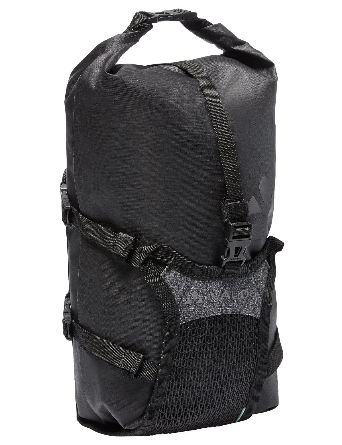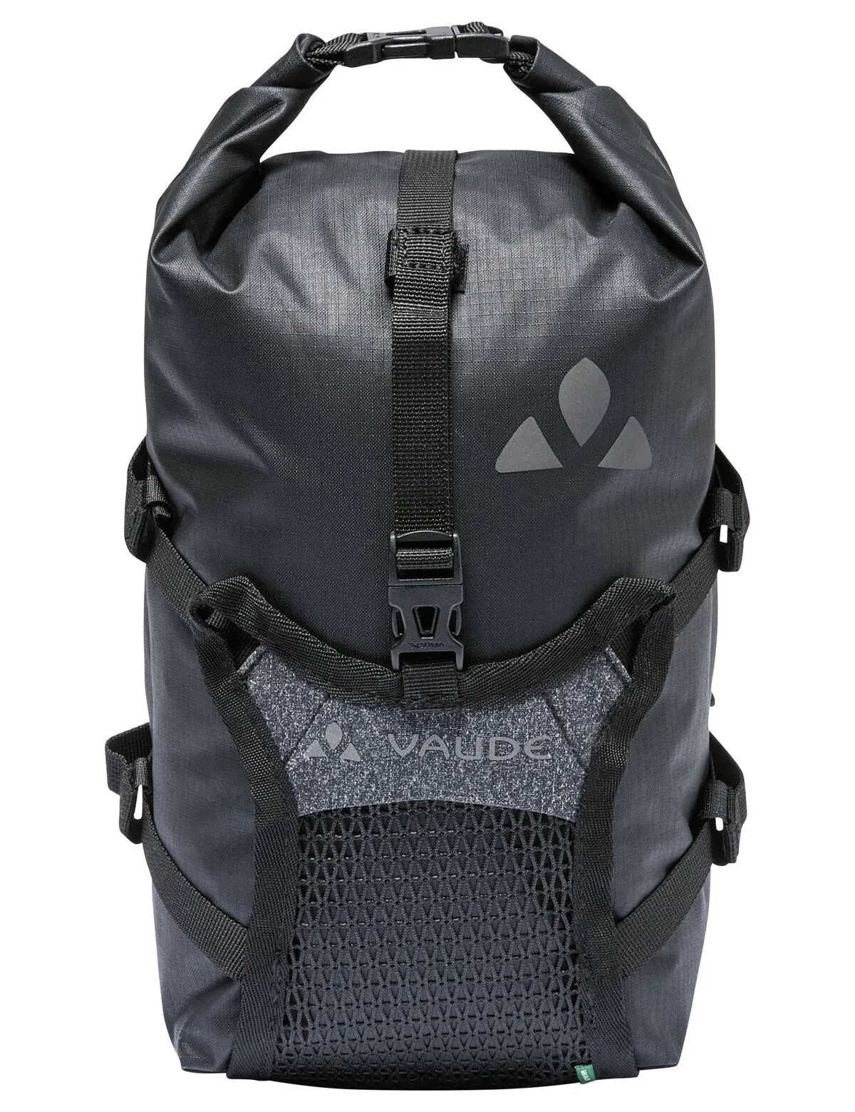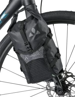 A non-slip strip at the bottom ensures that the Trailmulti stays in place and can’t shift around. The clever front fork bag isn’t just a practical companion for bikepacking. It also does a great job of protecting the environment, as both the mounting system and the packsack are made from 100% recycled materials. The VAUDE Green Shape label stands for environmentally-friendly, functional products made from sustainable materials. Due to the amount of force needed to attach the straps to the fork, we do not recommend using this product with carbon forks. Delivery includes: 1 bag