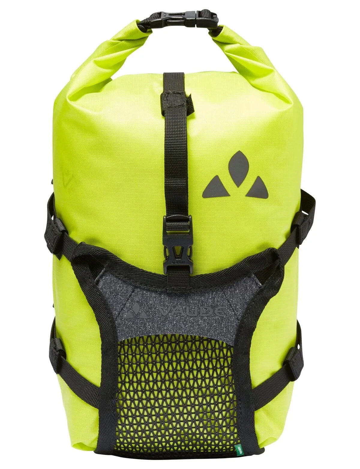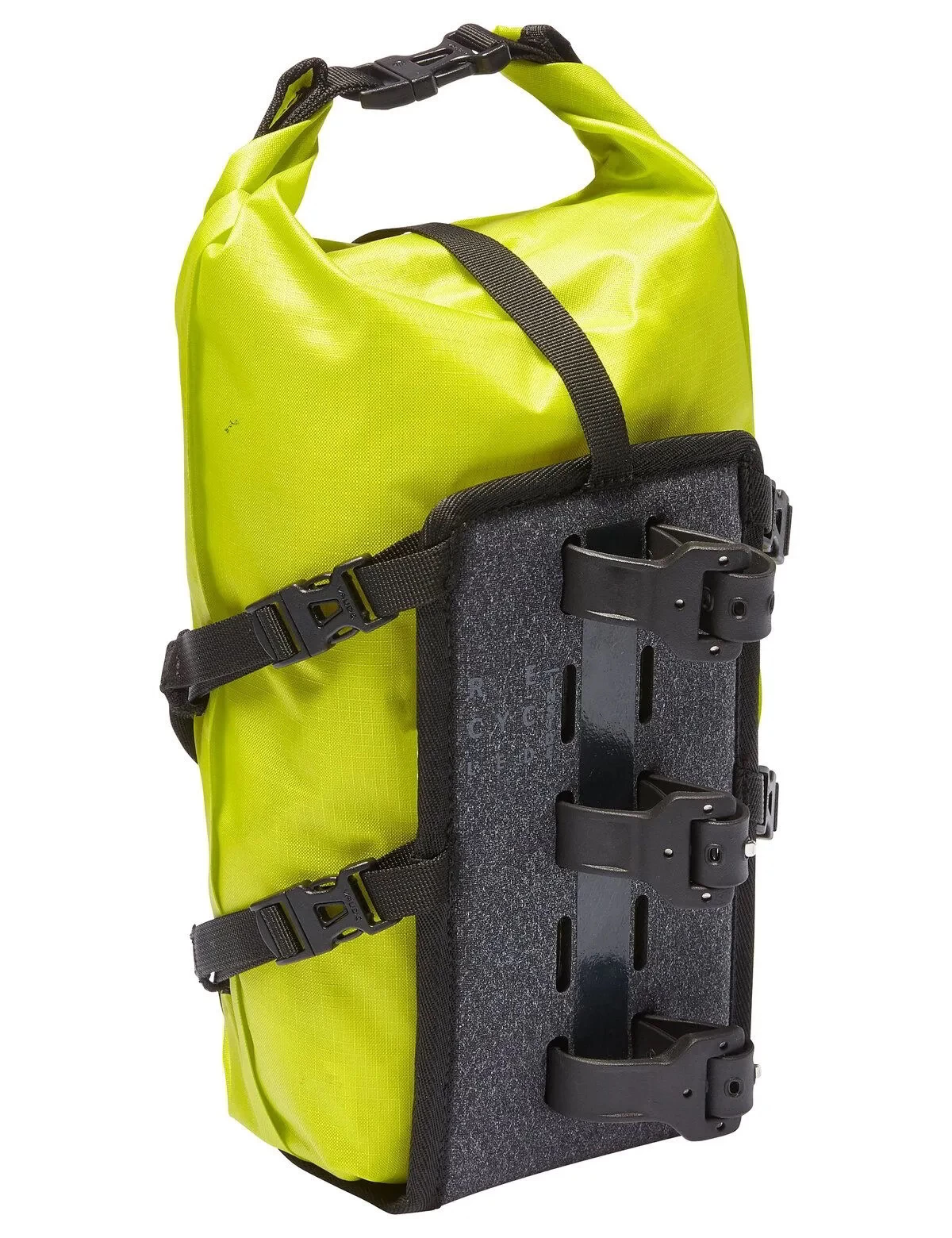 A non-slip strip at the bottom ensures that the Trailmulti stays in place and can’t shift around. The clever front fork bag isn’t just a practical companion for bikepacking. It also does a great job of protecting the environment, as both the mounting system and the packsack are made from 100% recycled materials. The VAUDE Green Shape label stands for environmentally-friendly, functional products made from sustainable materials. Due to the amount of force needed to attach the straps to the fork, we do not recommend using this product with carbon forks. Delivery includes: 1 bag