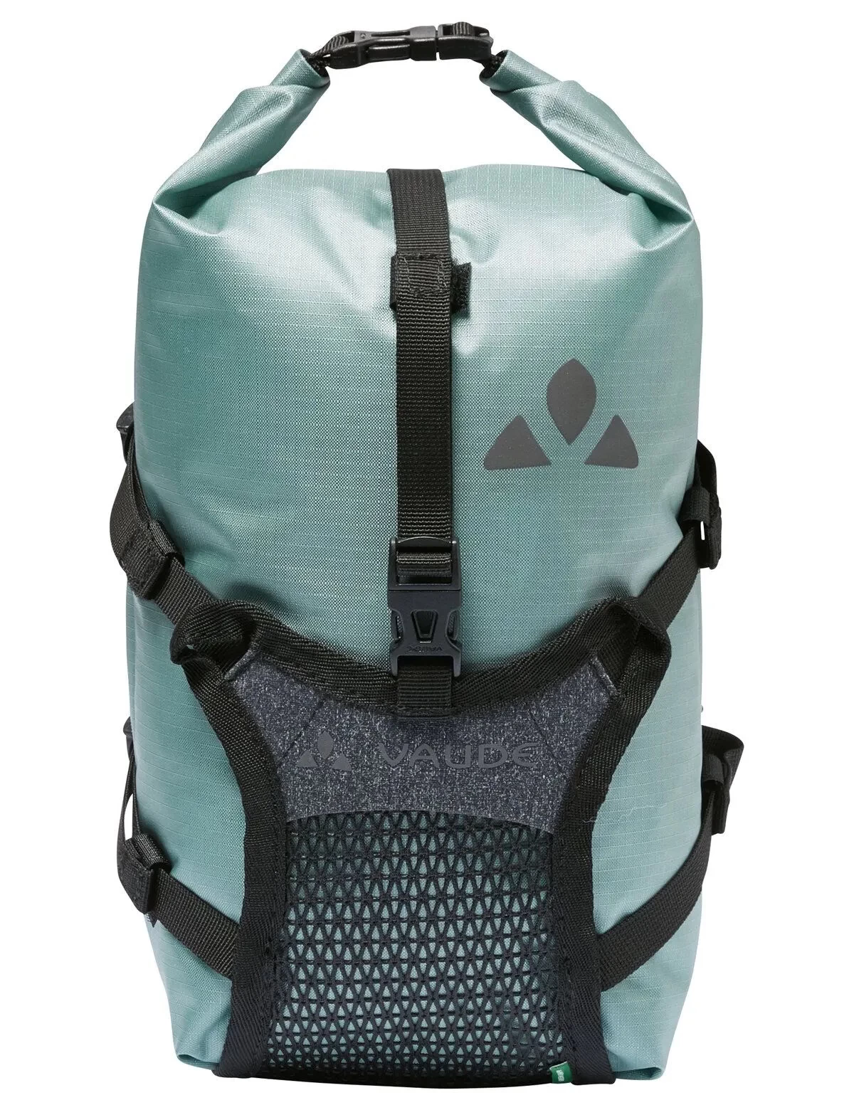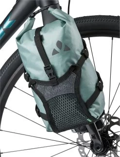 A non-slip strip at the bottom ensures that the Trailmulti stays in place and can’t shift around. The clever front fork bag isn’t just a practical companion for bikepacking. It also does a great job of protecting the environment, as both the mounting system and the packsack are made from 100% recycled materials. The VAUDE Green Shape label stands for environmentally-friendly, functional products made from sustainable materials. Due to the amount of force needed to attach the straps to the fork, we do not recommend using this product with carbon forks. Delivery includes: 1 bag