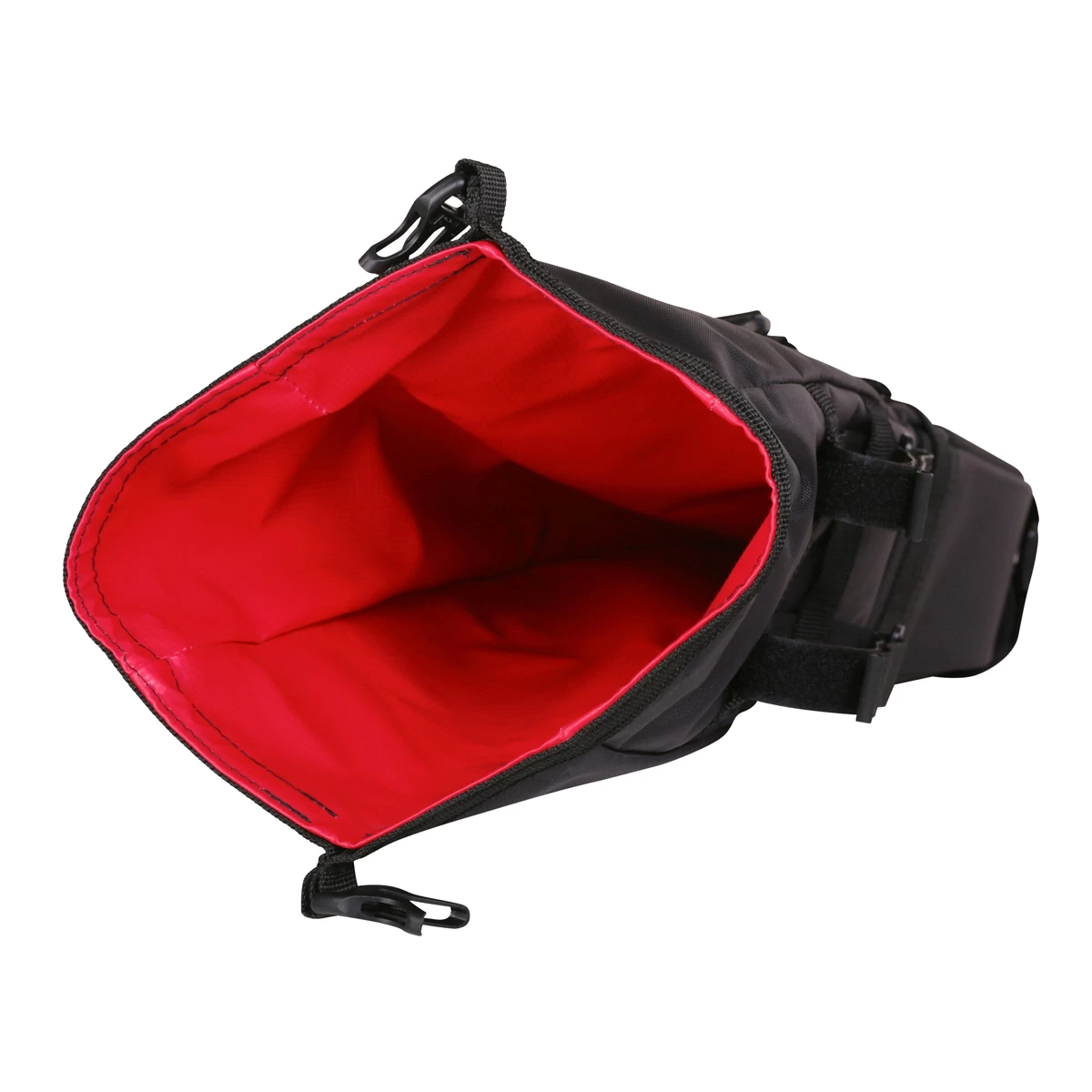 The Z Adventure R5 is a saddle bag designed to carry large volume of items without the need for a rear rack. Equipped with several durable self-adhesive straps and anti-tear material on its base, this bag attaches to the saddle rails and seat post for optimal weight distribution on the bicycle. The 5L volume is ideal for day-long outings or for training in variable weather conditions. The Z Adventure R5 is a great alternative for those who don’t want a backpack. The folding closure and waterproof fabric with heat-sealed interior can safely carry all the equipment needed for a tour.